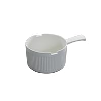 (More customer reviews)This microwave sauce pan is a nice size for heating a can of soup or vegetables in the microwave, or for heating water for tea. It is small enough that it will fit in even the small size microwave ovens on the rotating glass tray. You just need to put it on the tray off center. The pan is six inches in diameter, and the handle sticks out an extra three inches. It is 3-3/4" tall. It does not come with a cover, but you can improvise with a small Corning plate or other microwave-safe cover.