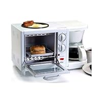 (More customer reviews)This 3 in 1 Breakfast Machine contains a toaster oven, hot plate, and coffee maker. All the items are smaller than if you bought them separately, but if you are tight on space this is definitely handy.