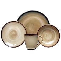 A unique look of reactive glaze gradation from a rich brown to a lighter brown.Four each, dinner plates(10.5"), salad plates(7.5"), soup/cereal bowls and mugs, all stoneware body