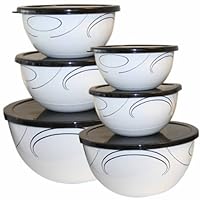 Great for storage, mixing, or serving, the Corelle Coordinates large bowl set offers multiple uses for any kitchen enthusiast. The set includes six bowls and six air-tight, plastic, sealable lids in the following sizes: .75 quart, 1.15 quart, 1.5 quart, 2.15 quart, 3 quart, and 3.75 quart. A matching 6-piece Simple Lines small bowl set is available separately. Each bowl is made of enamel on steel with stainless-steel rims. The Simple Lines pattern is offered as a full collection with open stock pieces and dinnerware sets to make it easy to build a fully coordinating kitchen collection. The simple pattern blends with existing dinnerware patterns as well. For best care, use wooden and silicone utensils when mixing in the bowls and hand wash.