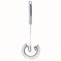(More customer reviews)When I was growing up we had a "coiled spring" whisk that was oval rather than round (the main wire, not the coil). It was not quite as flat bottomed at this one, and my mother used it constantly, especially for gravy--and she NEVER had lumpy gravy. I inherited that whisk, but the plating is worn and it rusts easily. Then one day I saw this whisk and said, VIOLA!!! I purchased it, and I use it constantly, even in containers where I used to use regular elongated wire whisks. I use this more than all my other whisks combined! It is perfect for use in saute pans for sauces, and although the wire is metal it does not mar non-stick surfaces. It's worth twice the price--because it is a real workhorse!!! If you've never seen or owned one, get one, and consider it the perfect gift for any cook you know--even cooks that aren't very good ones--this will make them a better cook--especially for sauces and gravies!!!