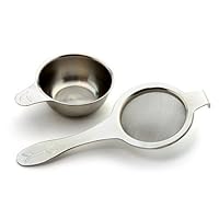 Our stainless steel infuser brews and strains loose leaf tea, while the cup catches drips before they hit the table, linens or counter.Extended lip rests the infuser over cup or pot.