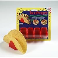 (More customer reviews)To keep my homemade taco shells upright to fill and hold before eating, I've used those little plastic three-legged "tables" designed to keep the pizza box lid from touching the pie. They generally work well. Finding these Taco Proper Taco Holders on Amazon.com, I decided to give them a try. They, too, generally work OK, however they are just a bit too narrow for some shells to easily fit into the holder. It's usually possible to wedge the cooked shell down into the holder without breaking the shell, but not always. Care sometimes must be used to remove the taco to eat it lest the shell break. These minor problems are occasional only, so while a slightly larger holder would be better, these items are adequate.