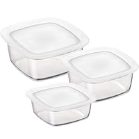 Sleek and stylish, this set of three food-storage containers makes a smart choice for preserving leftovers, storing dry goods, packing on-the-go lunches, and more. The units feature clear, tempered-glass bases that resist staining and allow for a quick view of inside contents, while their compact, square shapes save space by stacking neatly with other containers in the refrigerator. Equipped with corner tabs for easy removal, the containers' durable propylene lids provide extra-secure, airtight seals that ensure spill-proof use, even when filled with sloshy soups, sauces, and other liquid-based foods. Best of all, the handsome containers move effortlessly from the pantry or fridge to the dishwasher for safe, thorough cleanup. Made in Italy, the 7-1/2-ounce container measures approximately 5-4/5 by 5-4/5 by 3-3/4 inches, the 17-ounce container measures approximately 7-1/2 by 7-1/2 by 3-3/4 inches, and the 47-ounce container measures approximately 8-4/5 by 8-4/5 by 3-3/4 inches.