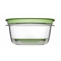 Rubbermaid's Produce Saver collection of food-storage containers helps extend the life of produce by utilizing a tray and vent system. The vent in the lid allows oxygen to circulate around the produce, while the included tray, once placed inside the food-storage container, helps keep the produce elevated about a 1/2 inch away from moisture. The collection also makes container and lid organization a breeze. Designed with space efficiency in mind, the lids and bases nest together so that they take up less room when stored in a cabinet or drawer, plus the lids snap to the bottom of the bases and to each other, which means no more searching around for the right-size lid. Even more, one lid can accommodate several different-size bases. The square shape allow for stacking the containers when placed on shelves in the pantry or in the refrigerator, while super-clear bases provide better visibility of inside contents. The covered containers can be used in the refrigerator, freezer, or microwave, and clean up quickly by hand or in the dishwasher. Perfect for storing a leftover onion, baby carrots, or cherry tomatoes, this 2-cup food-storage container measures approximately 5 by 5 by 3 inches.